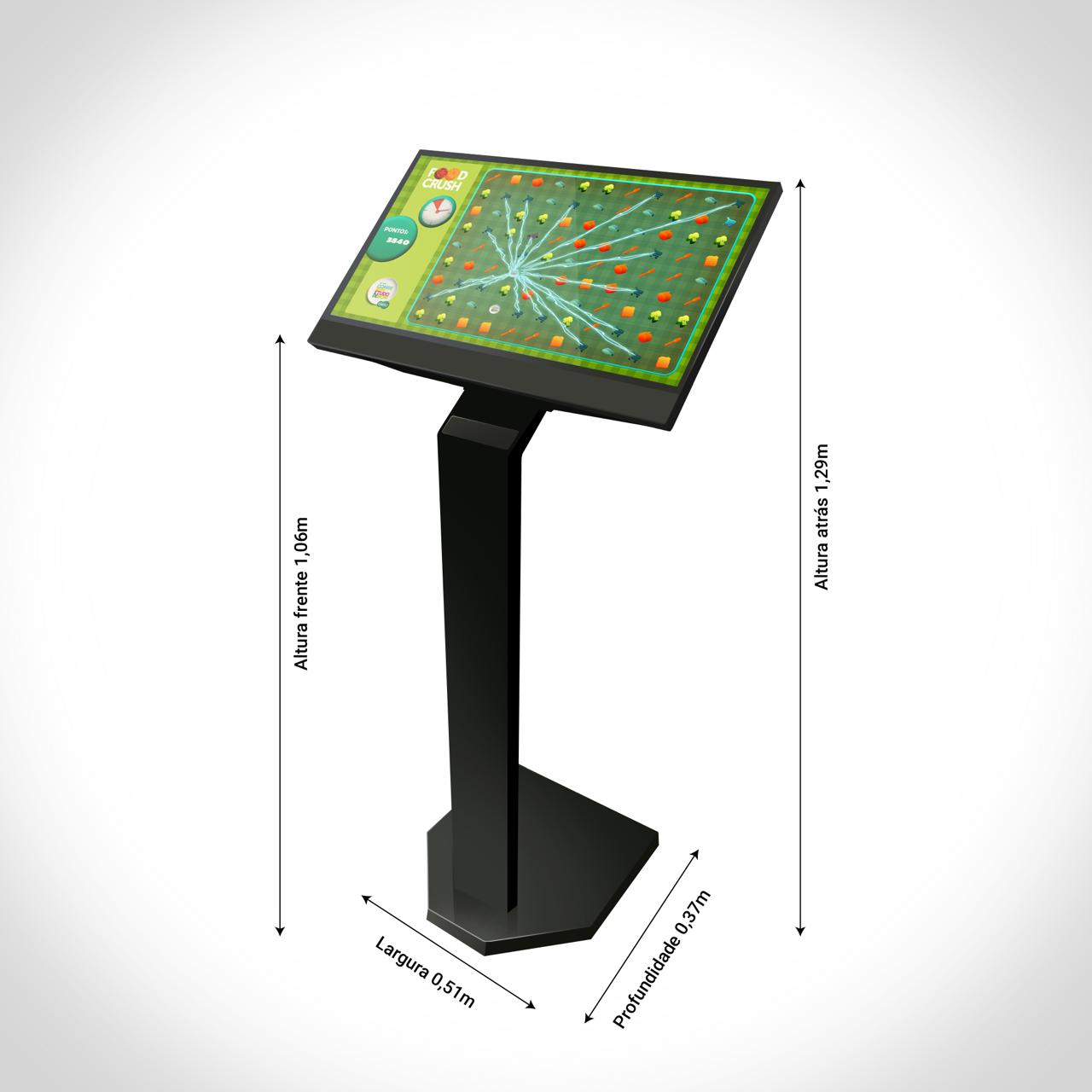 O totem Touch Screen será disponibilizado para locação em caráter provisório durante o período do evento. A entrega será feita no último dia, exigindo a presença de um responsável.